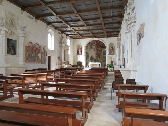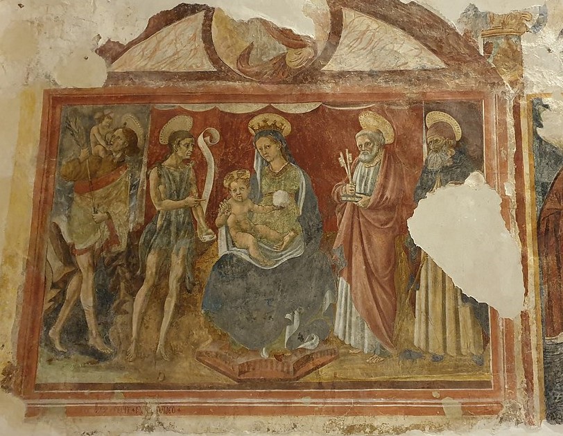 Sulla parete sinistra della navata della chiesa vi è un affresco di fine XV – inizi XVI secolo circa, che raffigura la Madonna con Bambino e Santi.