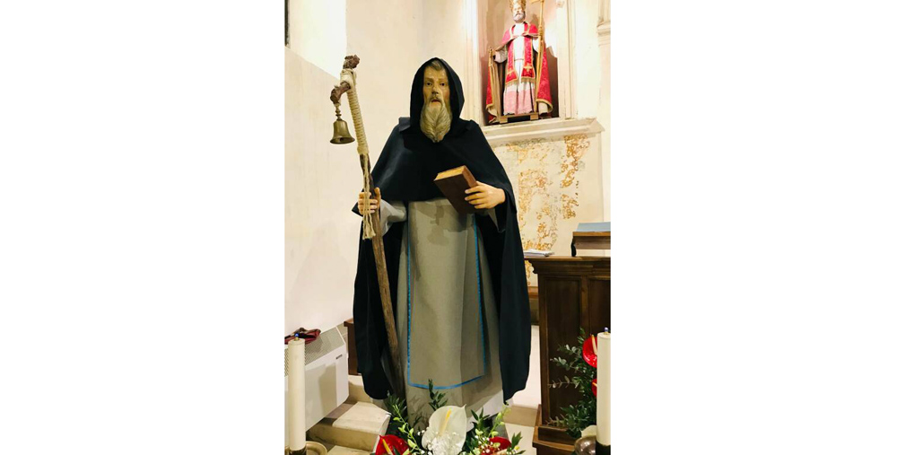 La statua è una pregevole “conocchia” (vocabolo popolare che indica una statua formata da uno scheletro ligneo, una sorta di manichino, dove sono scolpite la testa e le mani, poi rivestita da eleganti e pregiati abiti) del Settecento, alta 150 cm e rappresenta l’anacoreta egiziano riproponendone la tradizionale iconografia: l’età avanzata, l’abito monacale, il bastone con il campanello e il libro in mano.