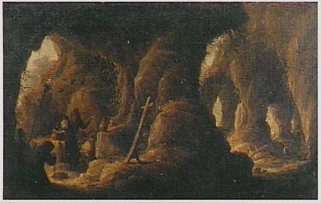 Olio su tela di 31 x 53,5 cm. “Interno di una grotta con tentazione di sant’Antonio abate”