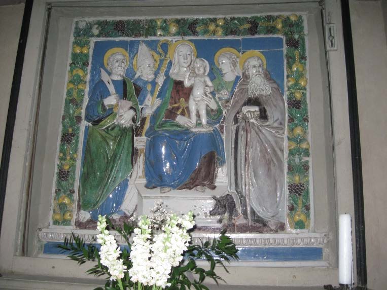 LONDA (FI), frazione Rincine. Pieve di Sant’Elena, terracotta di B. Buglioni con s. Antonio abate, 1500-10