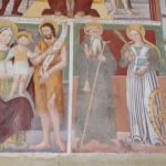 Altri santi sono affrescati una sola volta: santa Caterina d’Alessandria, san Giovanni evangelista, san Luigi IX re di Francia, san Giorgio, san Francesco o sant’Antonio, san Bartolomeo.