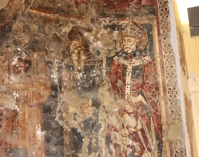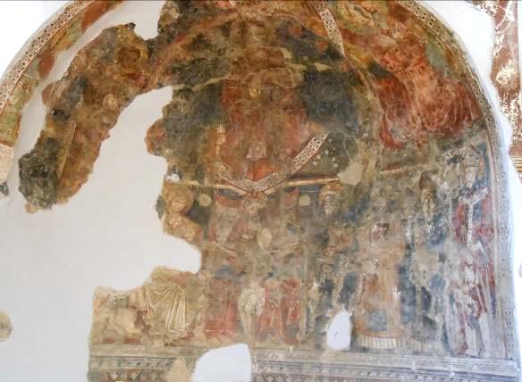Nel giro di pochi anni, probabilmente a causa dell’umidità, l’abside fu  decorata due volte, con due affreschi sovrapposti, l’ultimo strato identico a quelle parti ancora visibili del più antico.