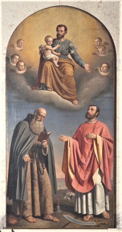 Conserva varie opere d’arte e tra esse il dipinto a olio su tela di 260 x 120 cm che raffigura San Giuseppe col Bambino in braccio tra angeli e, in basso, Sant’Antonio abate e San Valentino.