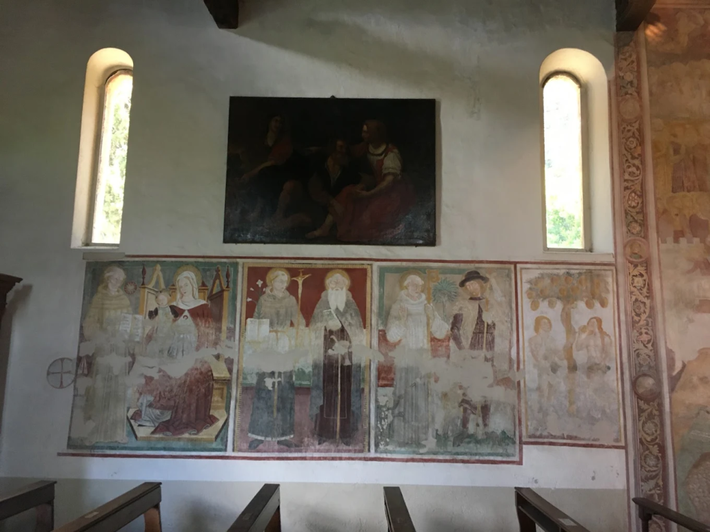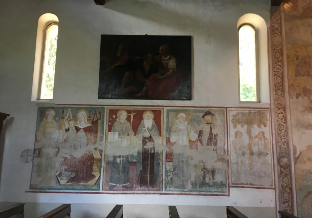 Numerosi sono gli affreschi votivi databili tutti al XV secolo.