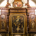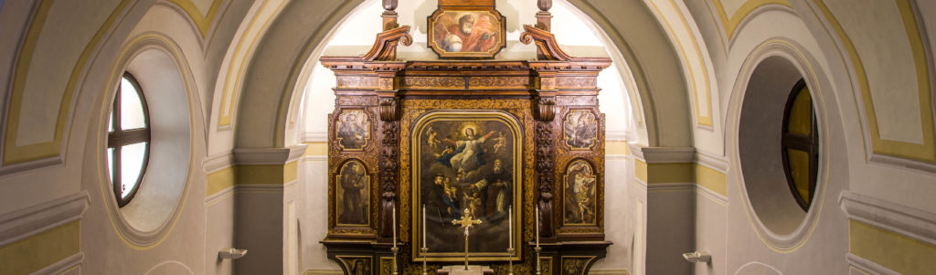 L’altra navata, quella sinistra, è stata eliminata nei secoli passati per creare un nuovo corridoio nel convento. Il soffitto è realizzato a botte con crociere riquadrate da cornici a stucco.