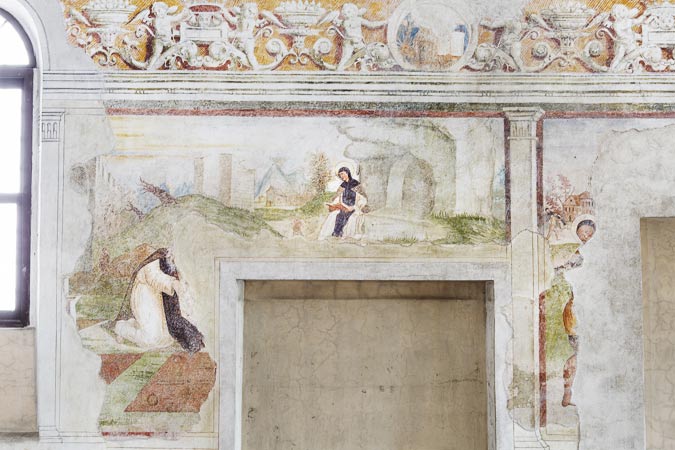 Inizio parete aggiunta, affreschi di Cesare Vecellio