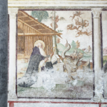 11° riquadro: “Incontro con Sant’Ilarione” tre episodi. Compare la campanella sopra la porta