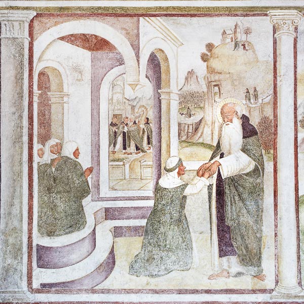 3° riquadro: “Tentazione del demonio” (il Santo è trasportato esanime)