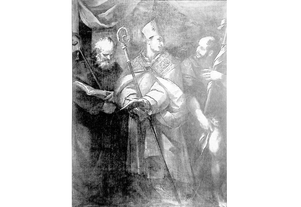 Di particolare pregio l’olio su tela, di 240 x 179 cm, raffigurante i “Santi Carlo (al centro), Antonio abate e Rocco (a destra)”, del 1616-17.