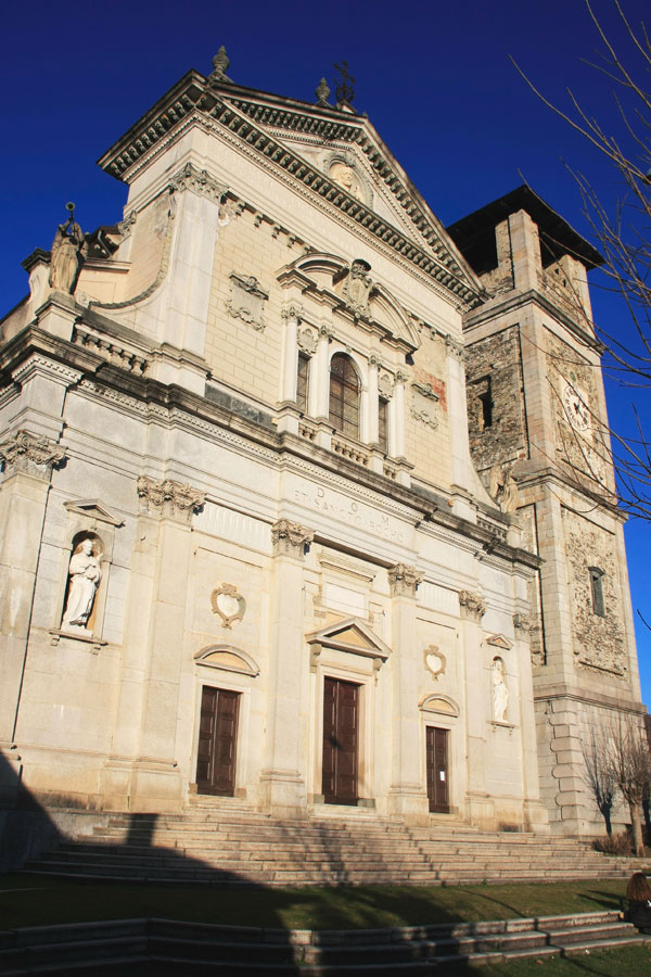 La Chiesa, di origine romanica, fu ricostruita completamente a partire dal 1627 su progetto dell’architetto milanese Francesco Maria Riccini. La facciata, di impronta classica, rimase per secoli incompiuta e fu portata a termine solo nel 1933 da Carlo Nigra.