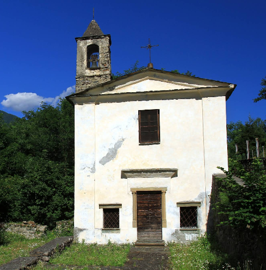 La chiesetta presenta una semplice facciata a capanna col portone affiancato da due finestre rettangolari e con al di sopra un’altra apertura. L’aspetto attuale risale al Seicento. Un rustico campanile sorge sul fianco destro dell’edificio.