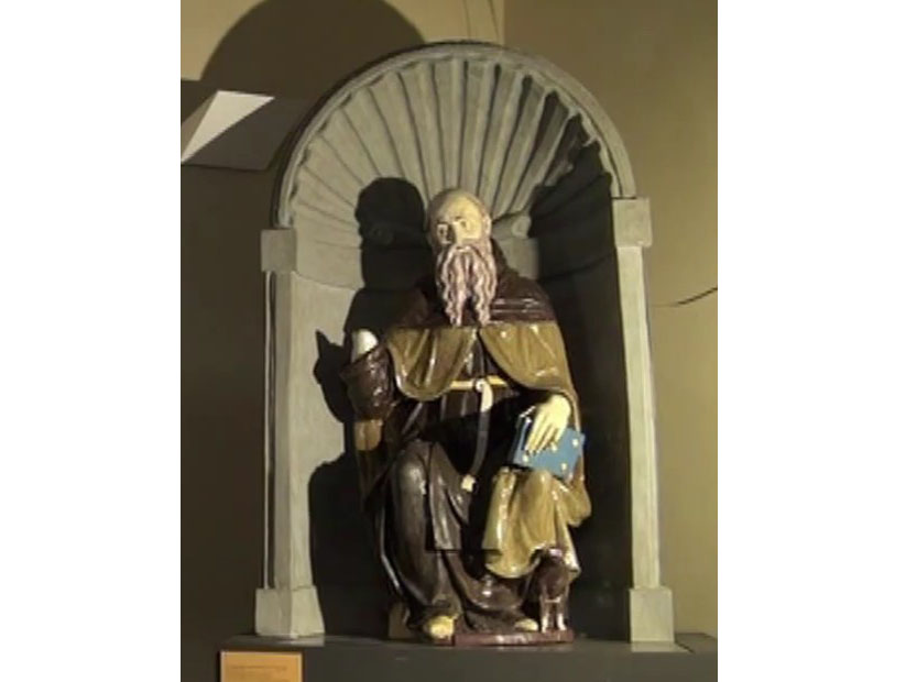 Terracotta invetriata policroma raffigurante sant’Antonio abate, opera di Luca Della Robbia “il Giovane” (1475 – 1548).