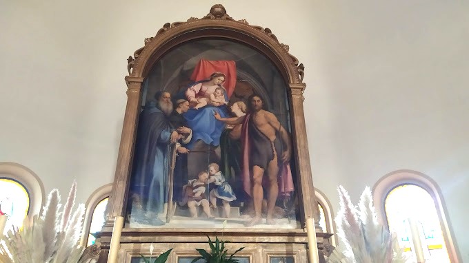 MORIAGO DELLA BATTAGLIA (TV). Chiesa parrocchiale di San Leonardo, statua e dipinto del Pordenone con s. Antonio abate