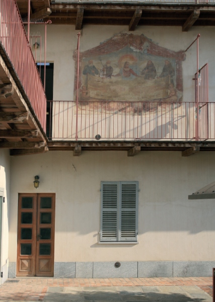 L’affresco è un po’ sbiadito e, dopo l’ottimo restauro delle facciate «pubbliche», sarebbe bello che un nuovo restauro gli restituisse il primitivo splendore.