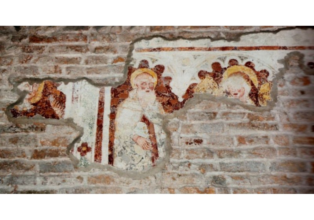 ORMELLE, fraz. Tempio (TV). Chiesa dei Templari, con affresco Madonna e Sant’Antonio abate.