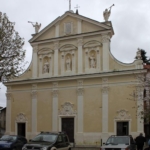 Semplice facciata a capanna con oculo. Campanile sulla destra.