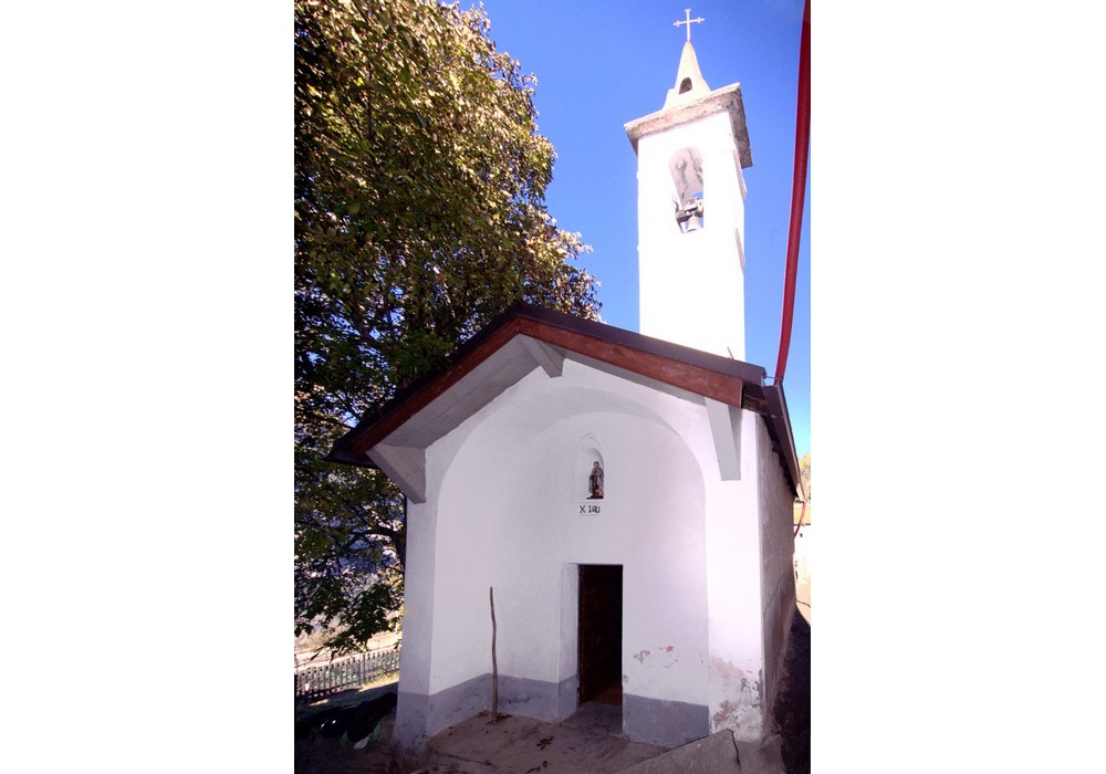 La facciata è profilata a capanna, è ornata da un grande arco che sopravanza il filo della parete e si imposta su due paraste molto sporgenti che concludono agli spigoli la facciata stessa. In asse alla porta e sotto ad una piccola nicchia è posta la data della consacrazione, 1683. Il campanile, a terminazione cuspidata, si eleva dal muro d’ambito a destra dell’ingresso.