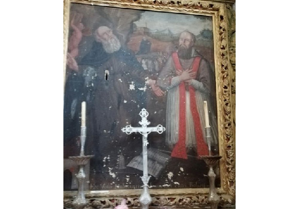 Sul lato sinistro c’è l’altare di Sant’Antonio: la sua decorazione settecentesca, più semplice, incornicia il dipinto con Sant’Antonio abate e San Francesco da Sales, che reca la seguente iscrizione: Ex voto habitentium huius loci Castri Bolarij anno 171?”. Il retable dell’altare di Sant’Antonio, con colonne tortili e fastigio, intagliato e dorato, è databile alla seconda metà del Seicento.