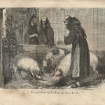 Il leggio corale, impostato su uno stipo per conservare i libri liturgici, presenta una decorazione ad intaglio e reca la data 1647.