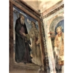 Sant’Antonio, a destra, si sorregge al bastone.