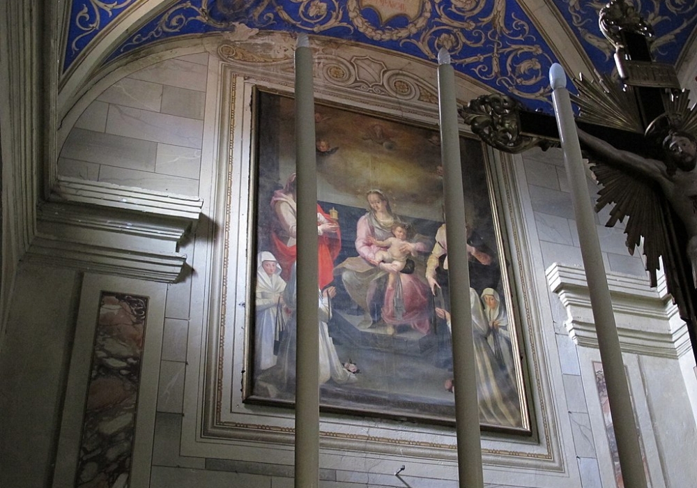 “Madonna col Bambino e i Santi Paolino, Lucia, Filippo Neri, Antonio abate, Antonio di Padova e Elisabetta d’Ungheria”, olio su tela eseguito nel 1665 circa da Giovanni Marracci (Torcigliano di Camaiore,1637 – Lucca, 1704).