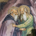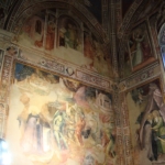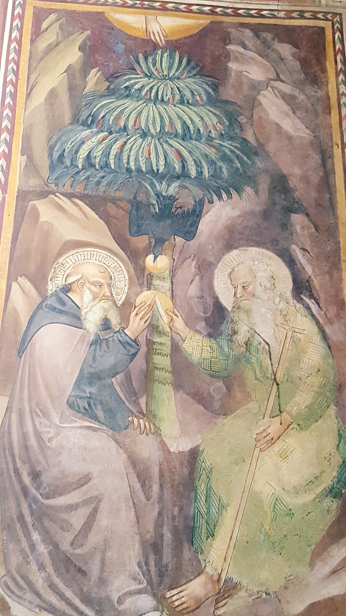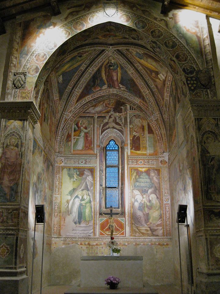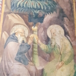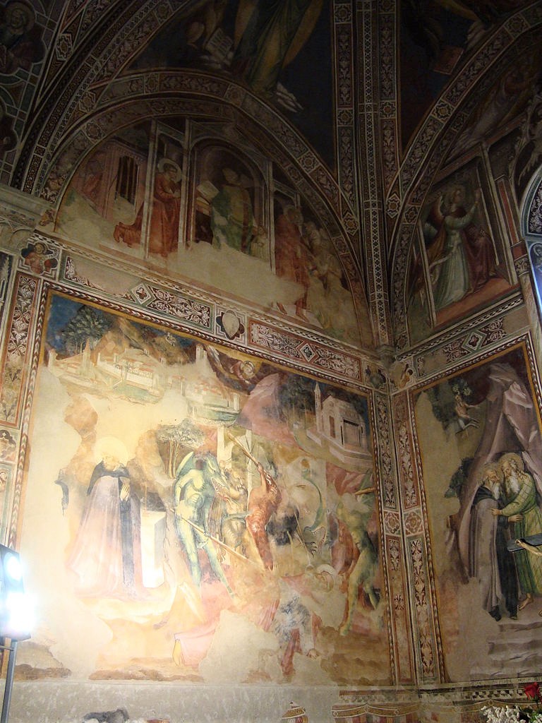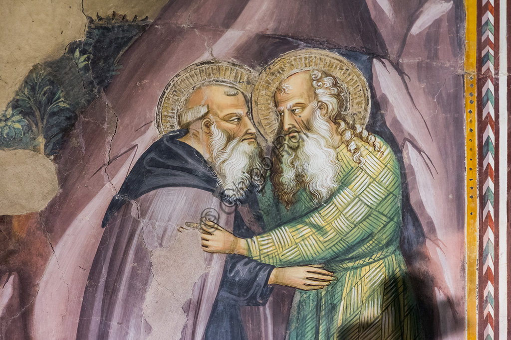 La zona presbiteriale fu completamente affrescata da Bicci di Lorenzo che vi lavorò dal 1421 al 1436 con la raffigurazione delle Storie di sant’Antonio abate (Vedi foto in basso). Nella lunetta sulla parete di fondo, intorno alla stretta monofora vi è un’Annunciazione; nel registro inferiore, a sinistra è raffigurante l’episodio dell‘incontro tra sant’Antonio e san Paolo eremita, a destra, i due Santi che si dividono il pane portato dal corvo.