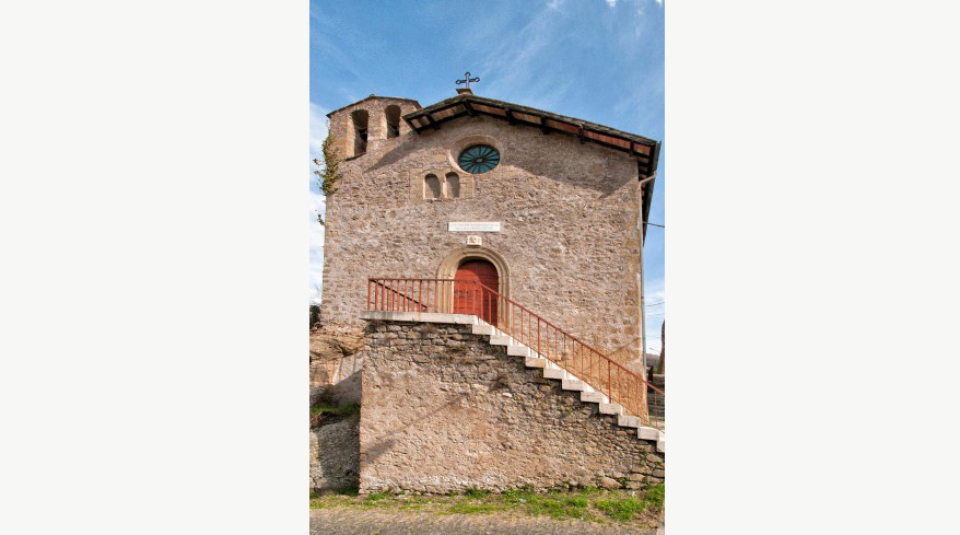 La fondazione dell’edificio è fatta risalire al secolo XIV, così come testimoniato dalla bifora (poi tamponata) posta in facciata e dal piccolo ambiente sito in fondo alla chiesa.