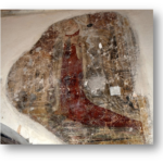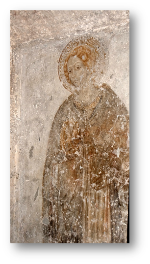 Nel vano sotto la torre campanaria, nel 1873, dopo che era stata tolta la calce che ricopriva l’arco d’accesso al piccolo ambiente, fu scoperto un affresco raffigurante una Santa Martire assai simile nello stile a quello della figura dell’Annunziata, attribuita a Giacomo da Poli.