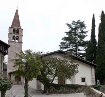 La chiesa è situata nella località omonima, su un colle nei pressi dell’abitato di Pomarolo.