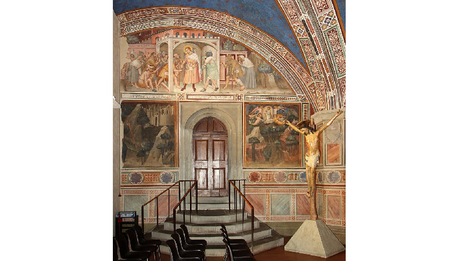 PRATO. Convento di San Francesco con immagini di s. Antonio abate nella cappella Migliorati di Niccolò Gerini e affresco staccato, inizi del XV secolo