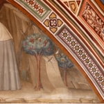 Quattro episodi della sua vita sono ai lati. A sinistra dall’alto la Tentazione dell’oro [I],