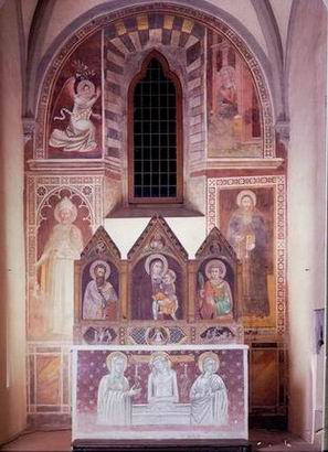 Un’altra figura di sant’Antonio abate (di Arrigo di Niccolò), e due santi di Francesco di Michele, autore anche delle solide e severe figure sulla parete opposta (San Giuliano [non chiaro] e la Madonna col Bambino, 1375-80), dipinte sotto imponenti baldacchini con cupola.