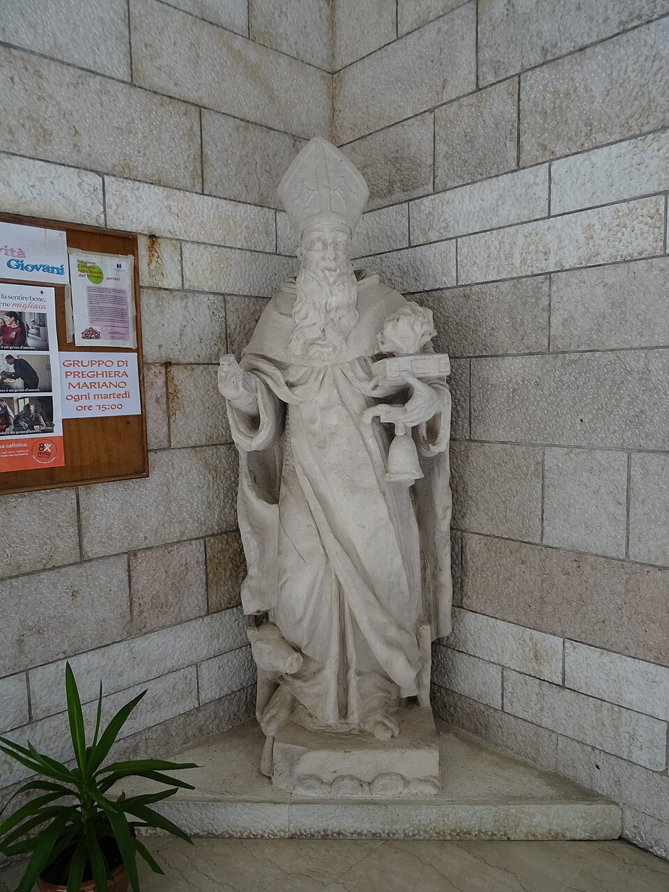 La chiesa conserva una statua di s. Antonio abate con la mitra sul capo, nella mano sinistra bastone con campanella e libro su cui è il fuoco. Il muso di un maiale spunta ai suoi piedi a sinistra.