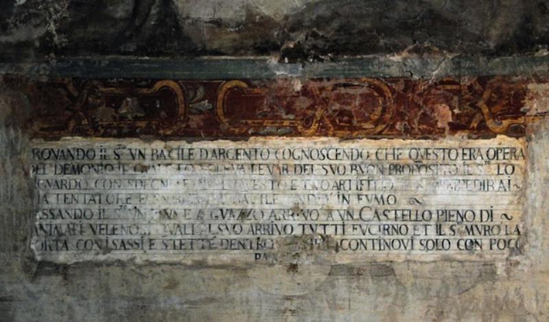 17 S Antonio Abate, il Santo resiste a inganni dei diavoli, particolare didascalia, Lombardelli