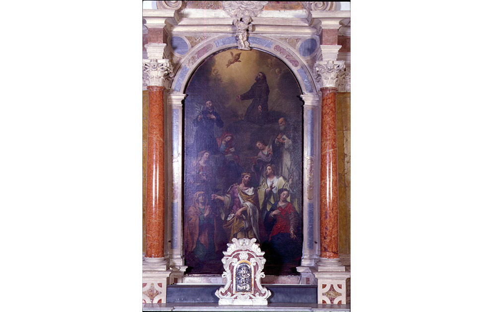 Sopra l’altare dedicato a sant’Antonio di Padova vi è una Sacra Conversazione di 255 x 125 cm, eseguita nel 1743 dal pittore veneziano Bartolomeo Litterini (1669 – 1748), raffigurante al centro Sant’Osvaldo re, intorno: Santa Apollonia, Santa Elisabetta d’Ungheria, Santa Lucia, Sant’Antonio abate, Sant’Orsola, San Francesco d’Assisi, San Filippo Neri.