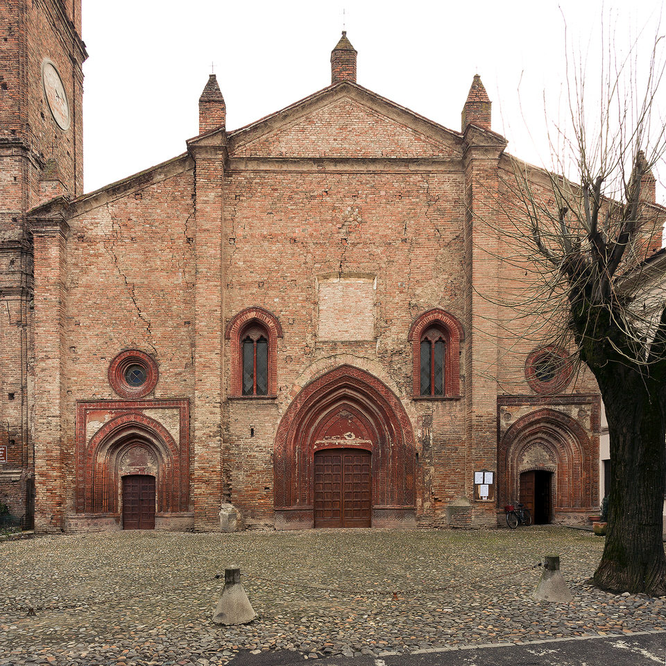 Preesistente alla struttura attuale, la Chiesa di San Siro era una delle tre chiese “fuori le mura”. Ricostruita entro la cerchia muraria, forse verso il 1000, e probabilmente ampliata e rimaneggiata in epoca non precisabile, porta alcune date sicure, inerenti ad affreschi e altre opere e a fatti storici come il Trattato di pace tra Pavia e Tortona, stipulato alla presenza del Barbarossa in Santa Maria nel 1165. Altre due date sicure sono il 1452 ed il 1456, riferite ad affreschi e tutt’oggi visibili.