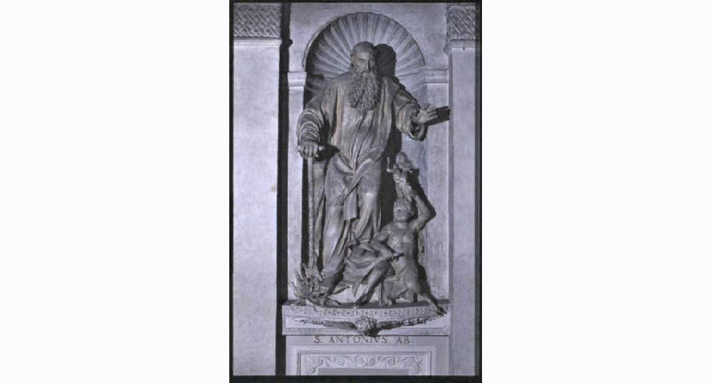 SAN BENEDETTO PO (MN). Basilica di S. Benedetto in Polirone, scultura di s. Antonio abate, 1559
