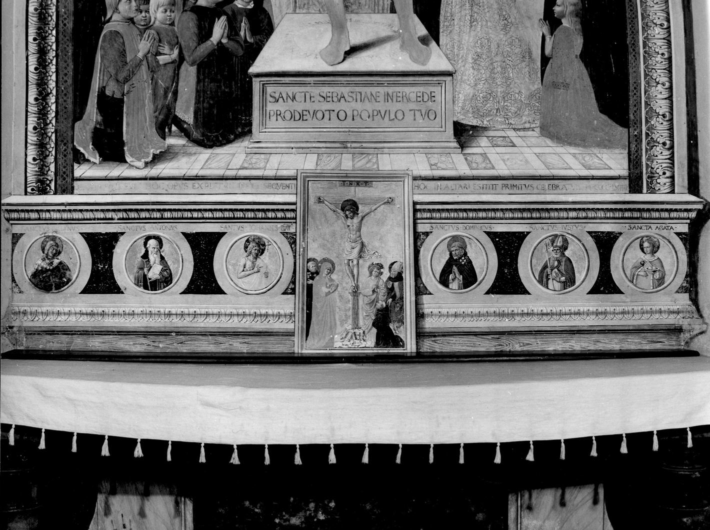 i negli oculi sono i loro nomi: “SANCTUS IULIANUS/ SANCTUS ANTONIUS/ SANCTUS IOHANNES BAT(TISTA)/ SANCTUS DOMINICIS/ SANCTUS IIUSTUS/ SANCTA AGATA”.