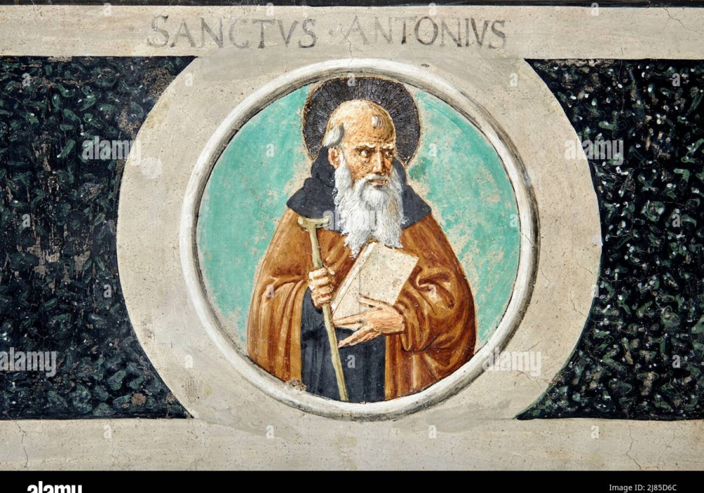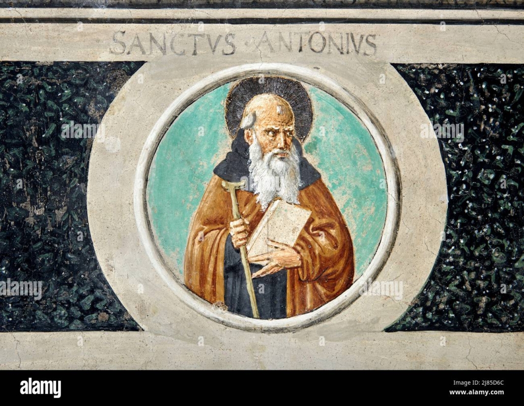 SAN GIMIGNANO (SI). Chiesa di Sant’Agostino con due immagini di s. Antonio abate