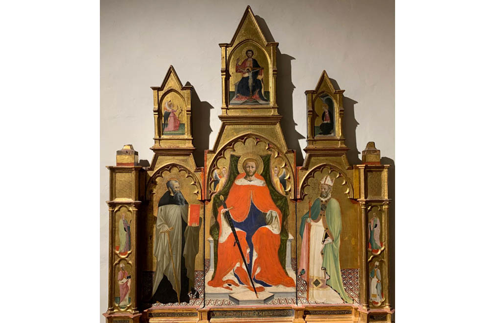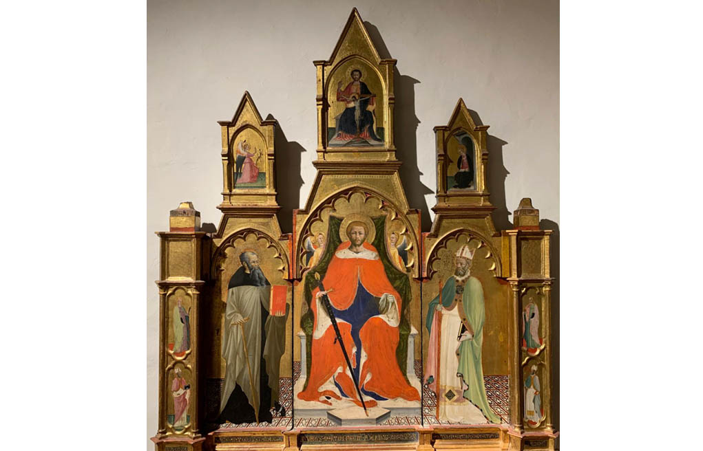 SAN GIMIGNANO (SI). Palazzo comunale, Pinacoteca, tre tavole con s. Antonio abate: trittico del “maestro del 1419”; tavola dello Pseudo Ambrogio di Baldese e tavola di Pier Francesco Fiorentino