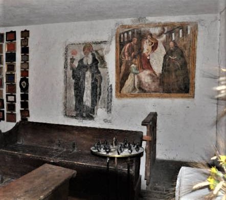 La cosiddetta “Stanza del Miracolo” conserva affreschi del XVI e XVII secolo, tra cui un’immagine di s. Antonio abate con campanella, bastone e fuoco.