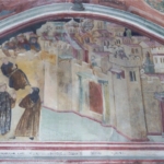 Il racconto prosegue con i due riquadri del registro inferiore, molto rovinati; una effige del Santo di cui a malapena si intravede il trono su cui è assiso e la scena della Morte di sant’Antonio, molto sciupata e di difficile lettura, con la rappresentazione delle esequie conventuali.