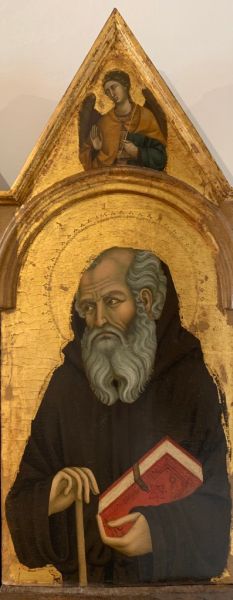 SIENA. Pinacoteca Nazionale. Maestro di Città di Castello, “Madonna col Bambino e i Santi Agostino, Paolo, Pietro, Antonio Abate. Polittico di Crevole”.