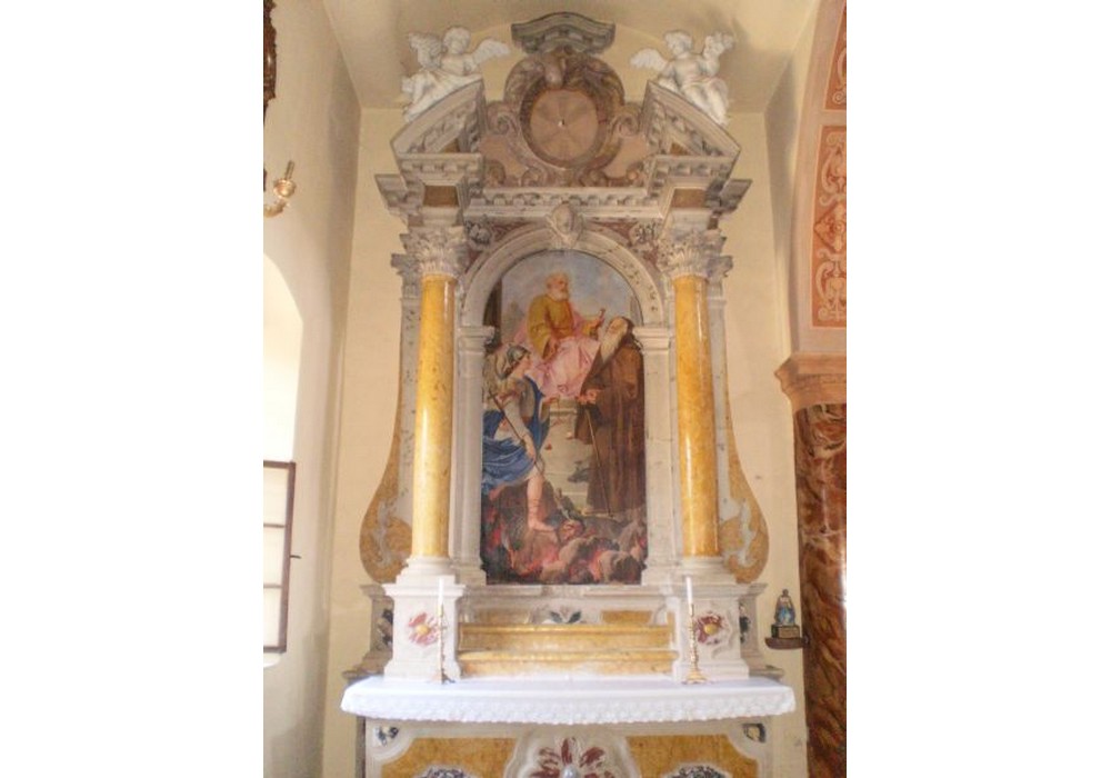 In fondo alla navata sinistra un altare con una pala raffigurante Cristo con in primo piano San Michele Arcangelo e Sant’Antonio Abate.