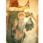 La figura di sant’Antonio abate, a sinistra, è priva della parte inferiore e lo raffigura benedicente.