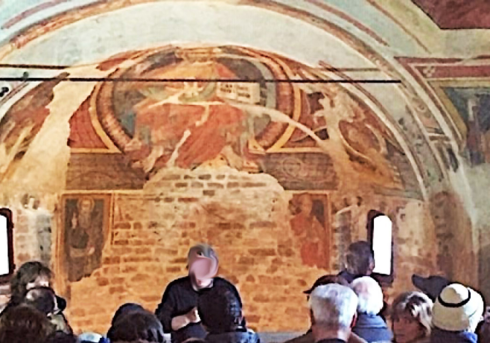 Nel catino absidale c’è un ciclo datato 1422 o 1423 che fu restaurato nel 1977: Cristo in mandorla e simboli del Tetramorfo su fondo decorato a quadrettini, alla cui base corre una scritta della quale rimane a malapena leggibile la data iniziale: «M CCCC XXII (o III)» e il nome «Matheus».