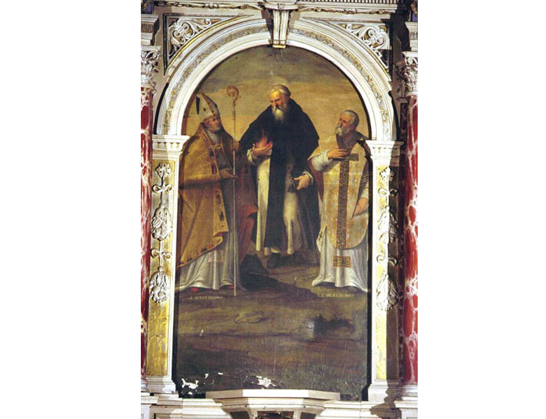 Opera ignorata dalla Bragalenti cui si deve una prima sistemazione organica del catalogo del Frigimelica cui spetta comunque per stringenti ragioni di natura stilistica. Il confronto è infatti stringente con opere certe quali la Trasfigurazione di Travagola o la Madonna del Carmine della Cattedrale di Feltre, ecc. Il Biasuz ha riconosciuto l’alta qualita’ pittorica ed espressiva del Sant’Antonio abate, memore dell’omonimo soggetto dipinto da Lorenzo Luzzo nella sacrestia dell’ex chiesa di Ognissanti a Feltre, vedi scheda.