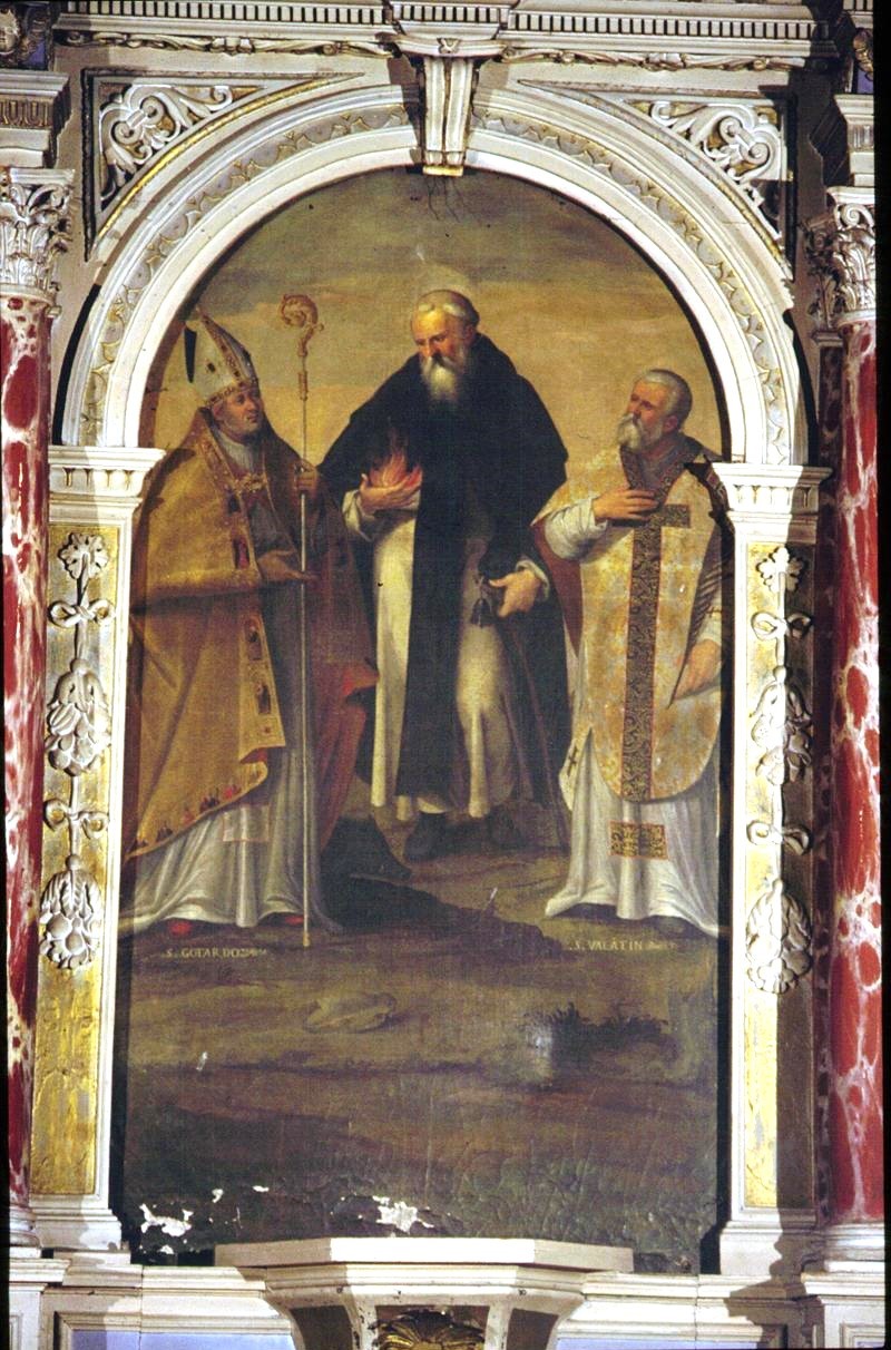 Nella parete destra della navata, sull’altare di Sant’Antonio abate vi è un olio su tela di 205 x 125 cm, raffigurante “Sant’Antonio abate, San Gottardo e San Valentino”, della prima metà del XVII secolo.