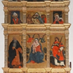 Olio su tela che raffigura il Santo stante, mentre tiene un grande libro sotto il braccio sinistro e la mano destra al petto. Guarda verso il cielo dove in un fascio di luce vi è il simbolo del tau.