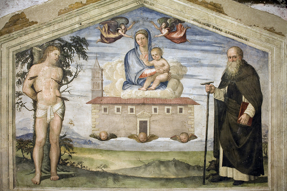 SPOLETO (PG). Chiesa della Madonna di Loreto, affresco con s. Antonio abate di J. Siculo, circa 1537